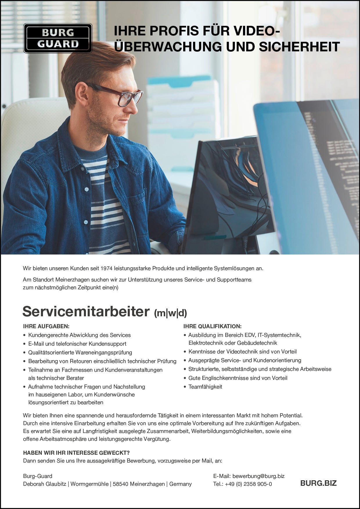 Safety is our business - that also applies to our jobs. If you find a job with us, you can be sure that we are interested in a long-term cooperation. Likewise, we are sure that you will be happy to stay with us. You will receive an attractive, performance-related salary and find a pleasant working environment with nice colleagues.Irrespective of current job advertisements, we are always pleased to receive speculative applications from experienced professionals from technical and commercial professions. Write to us about who you are, what you can do, what your plans are and why you would like to work at BURG-GUARD.