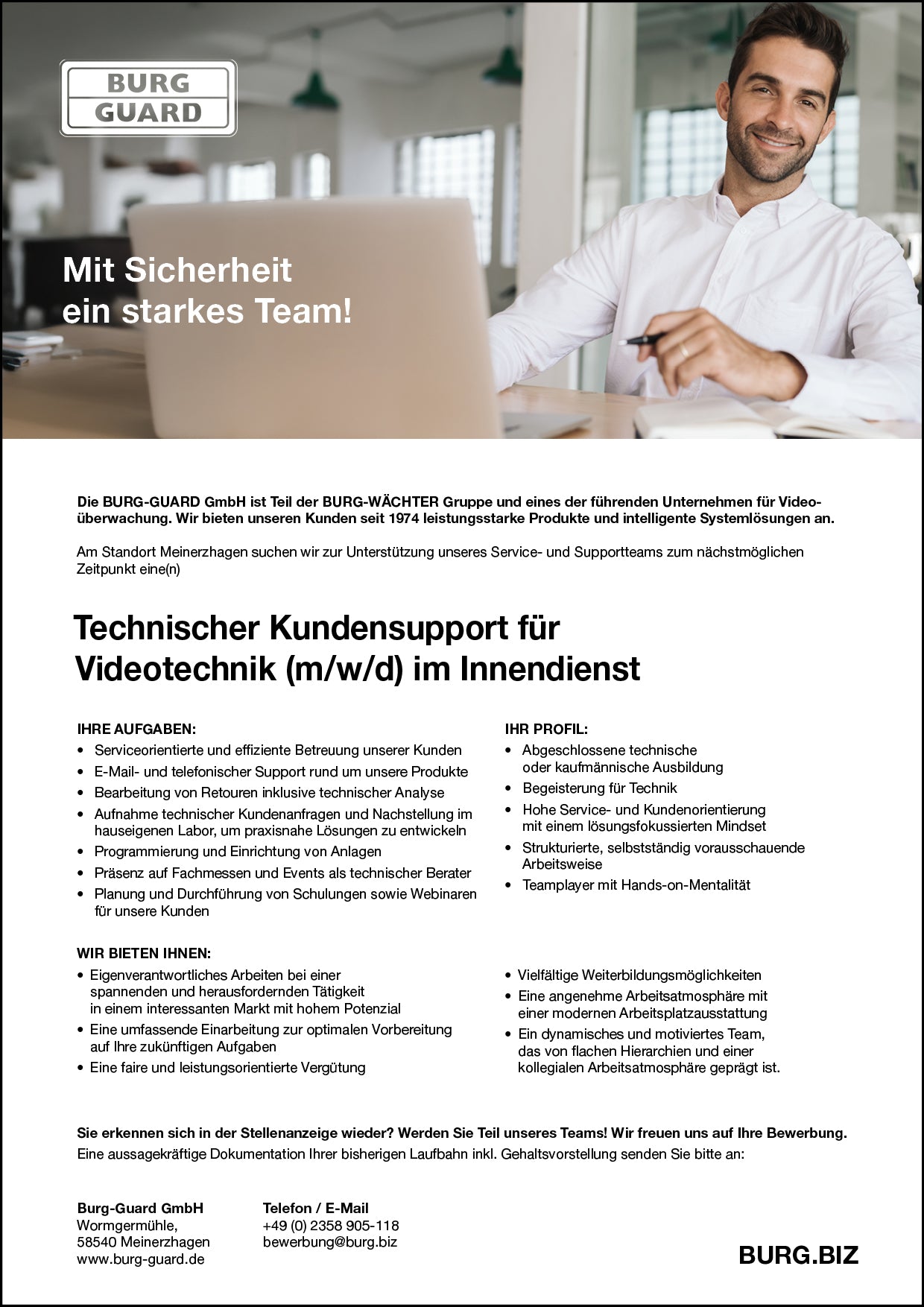 Regardless of current job vacancies, we always welcome unsolicited applications from experienced professionals in technical and commercial fields. Write to us and tell us who you are, what you can do, what your plans are, and why you would like to work at BURG-WÄCHTER.