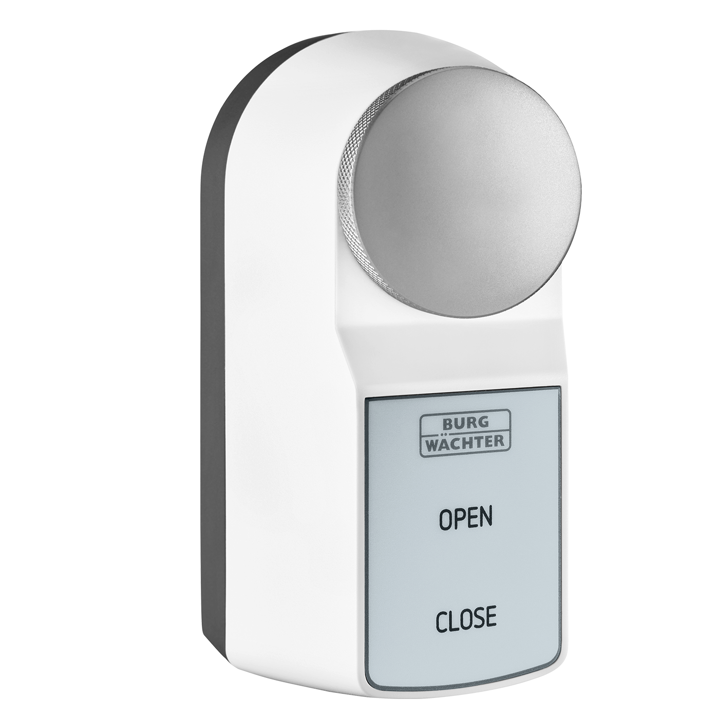 The motor lock is simply glued to the inside of the door, screwed to the existing fitting or clamped onto the cylinder. It is important that the key is in the lock! The exact details can be found in the installation instructions.