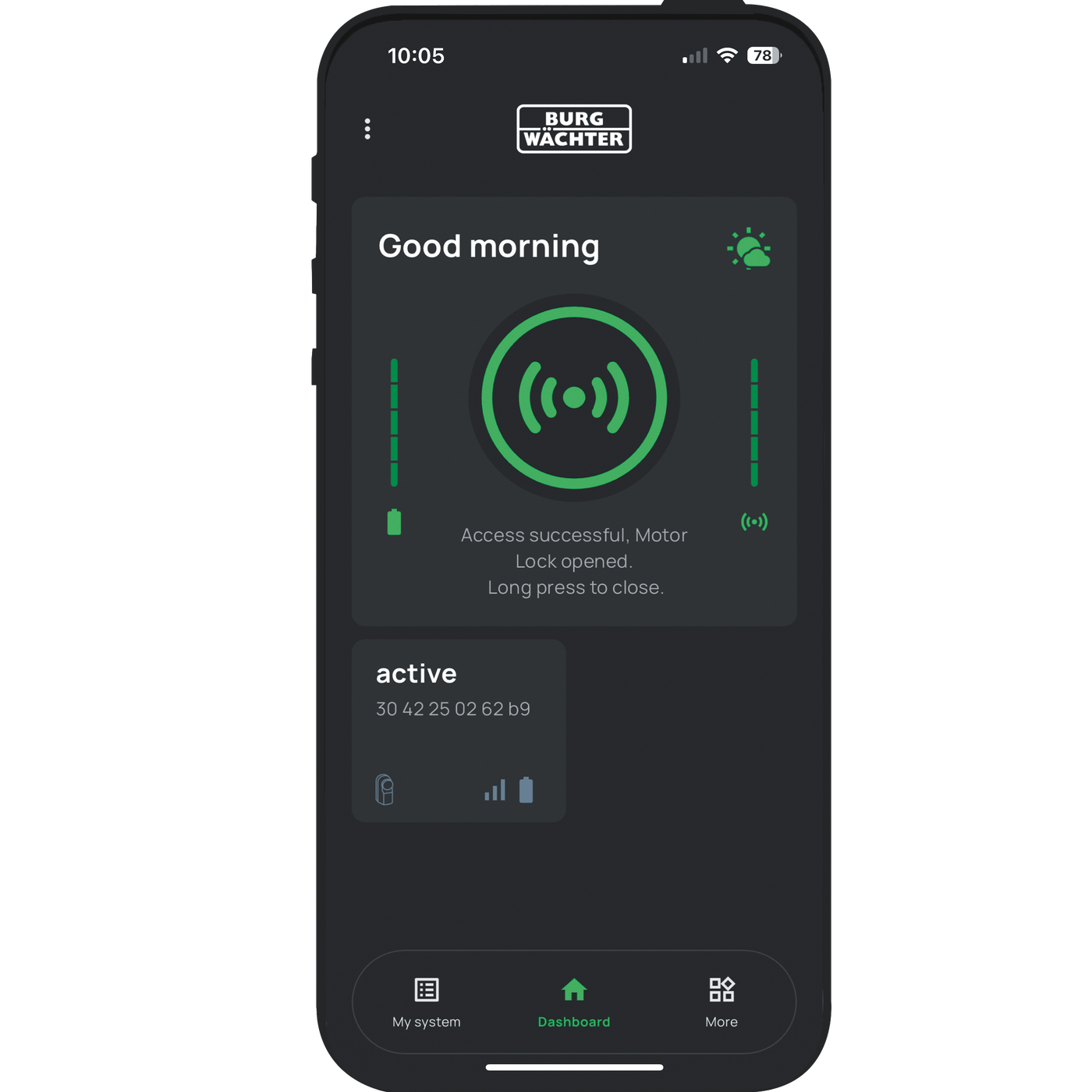 In addition to setting up and managing ENTRY ACTIVE centrally via your smartphone, the BURGsmart app also allows you to integrate additional users, including smartphones, and control multiple BURG-WÄCHTER devices.