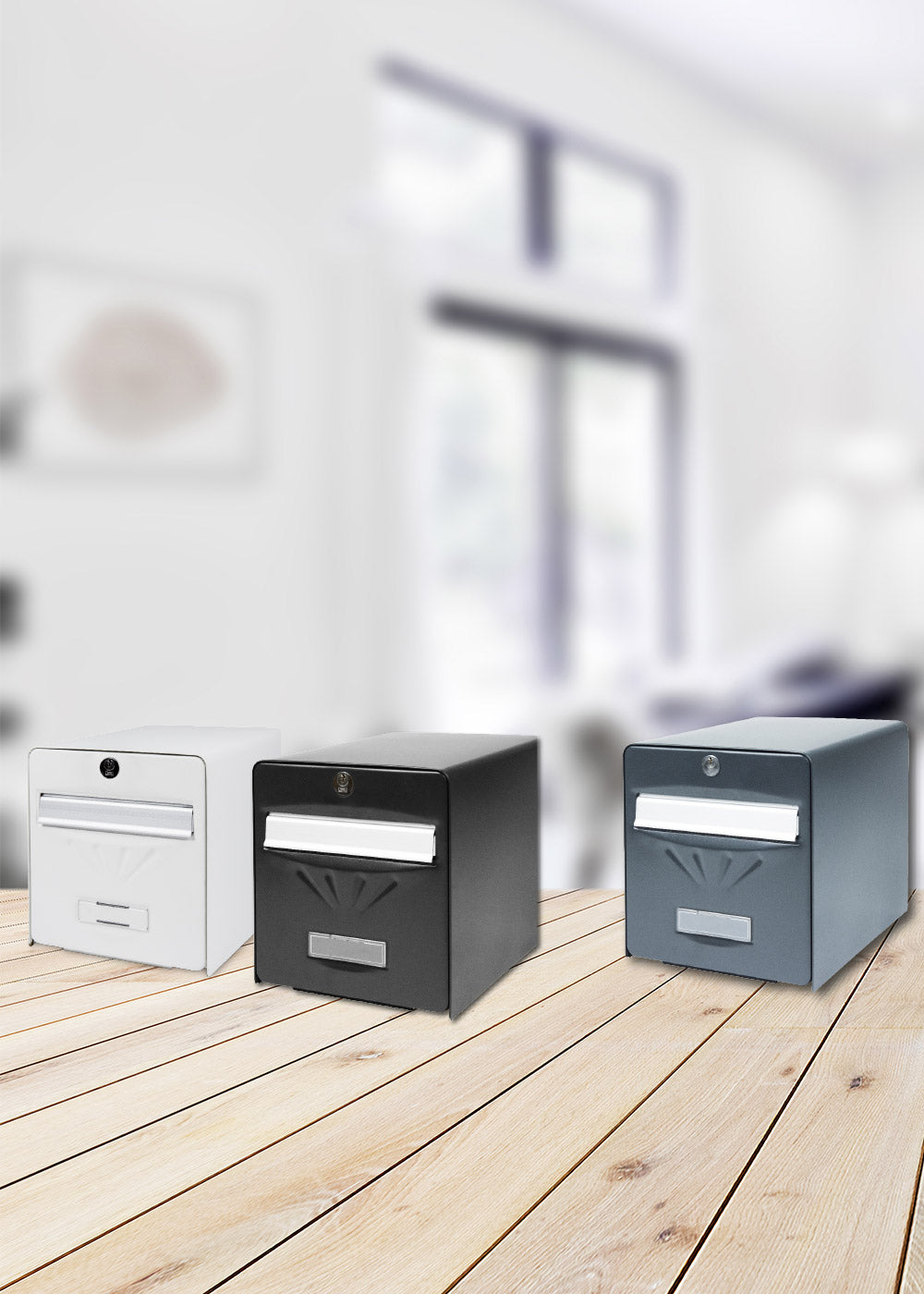 Un design qui attire tous les regards. Disponible en blanc, anthracite et noir avec son clapet en alu, elle est même dotée d‘une porte arrière vitrée. Ainsi on peut tout de suite voir s‘il y a du courrier!