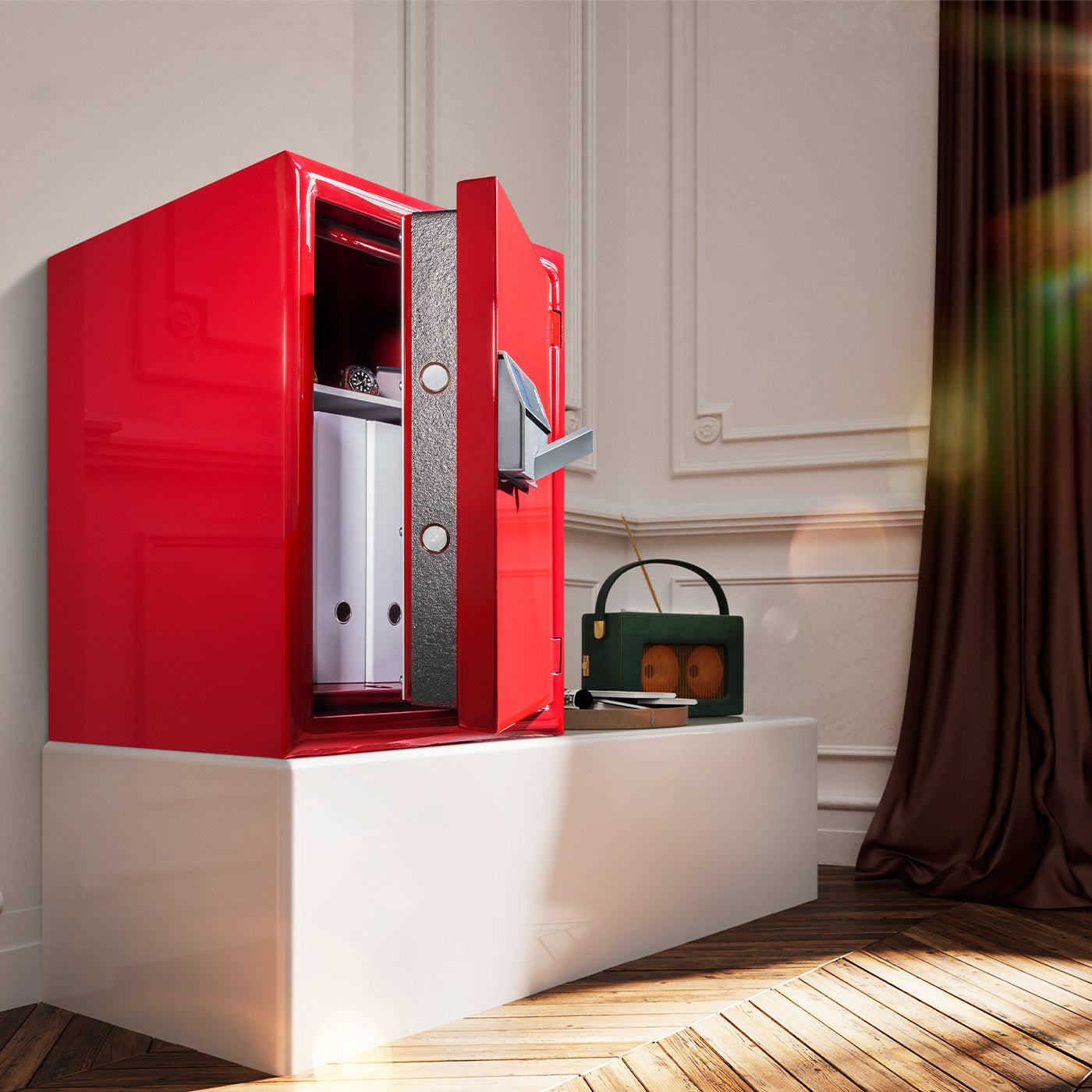 La protection des valeurs peut être si belle : Des coffres-forts de qualité dans votre couleur préférée et avec un intérieur élégant. La sécurité ne doit pas toujours être gris souris. Que ce soit dans l'entreprise ou à la maison : avec nos modèles laqués individuellement dans votre couleur préférée, votre coffre-fort attirera tous les regards et s'intégrera parfaitement dans votre ambiance personnelle. Choisissez parmi les modèles haut de gamme Diplomat, Office et Royal de BURG-WÄCHTER et apportez votre touche personnelle avec la couleur, la taille et l'aménagement intérieur.