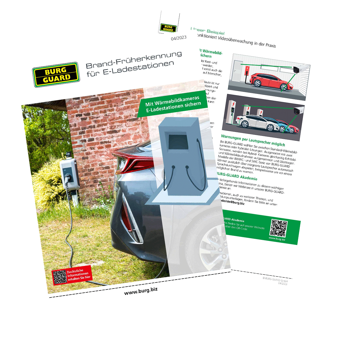 Eine Brand-Früherkennung kann ganz einfach größeren Schaden und sogar den Brand verhindern. Die Lösung bietet die Temperaturüberwachung der Ladesäulen. Bestens dafür geeignet sind BURG-GUARD Wärmebildkameras. Diese überwachen die Ladesäulen kontinuierlich und lösen bei einer Temperaturerhöhung Alarm aus, bevor ein Brand ausbricht. Optional wird direkt die Stromversorgung der Ladesäule deaktiviert.