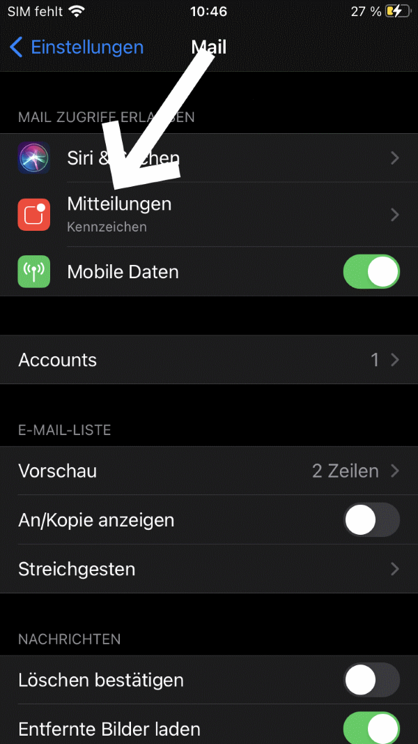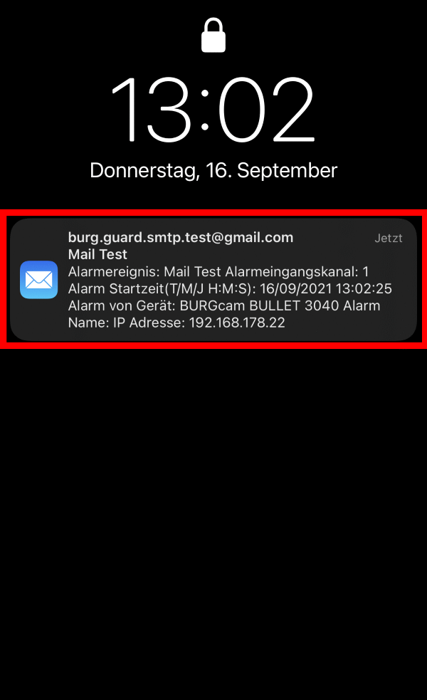 Voorbeeld: Push-bericht bij ontvangst van een e-mail.