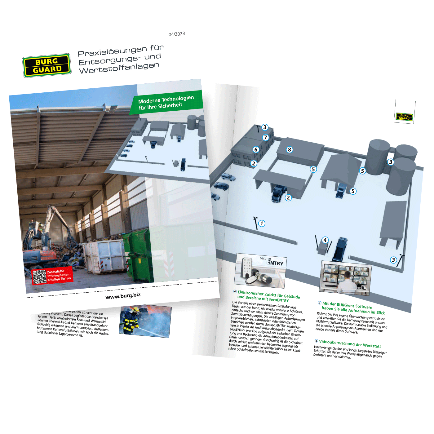 Dit toepassingsvoorbeeld toont de videobewaking van een afvalverwerkings- of recyclinginstallatie met netwerktechnologie van BURG-GUARD.