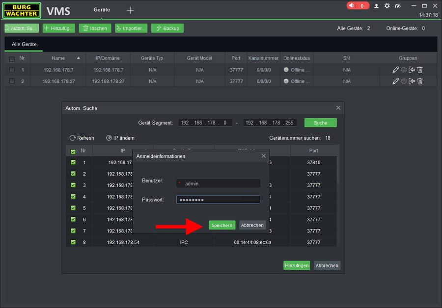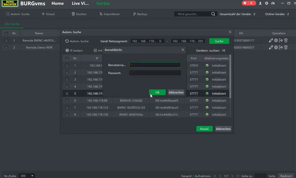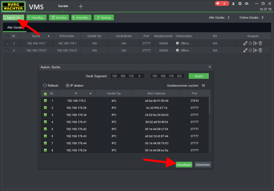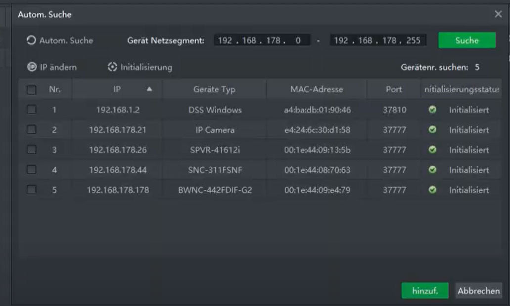 Autom. Suche > Alle Auswählen > Hinzufügen