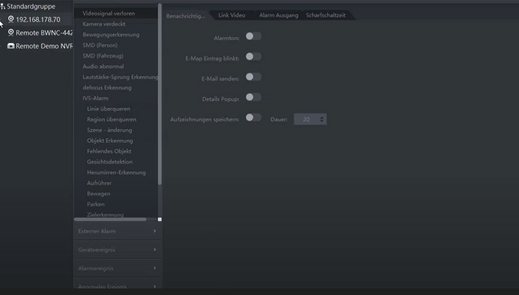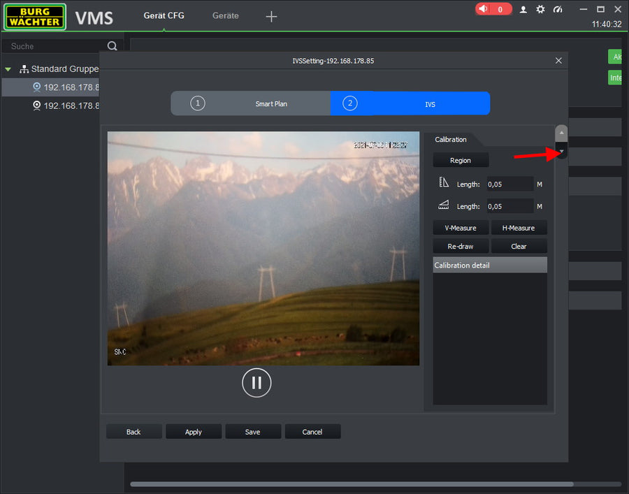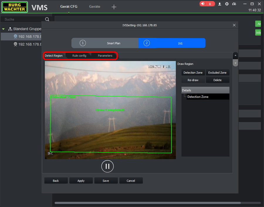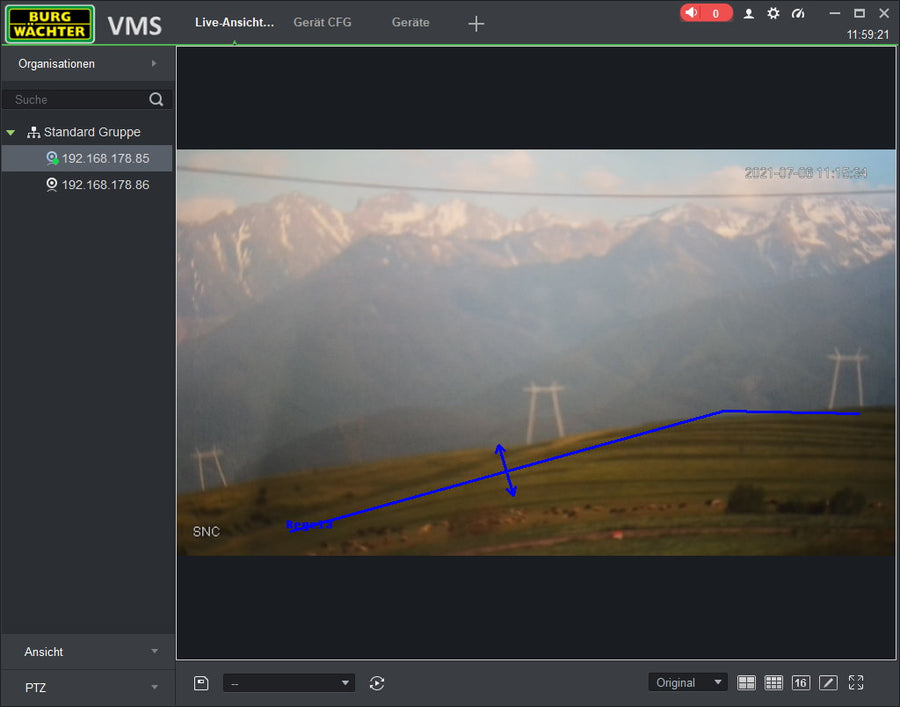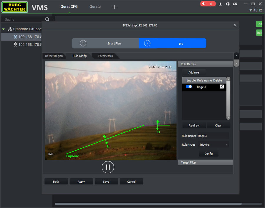 BURGvms IVA Kamera Konfiguration: Stolperdraht