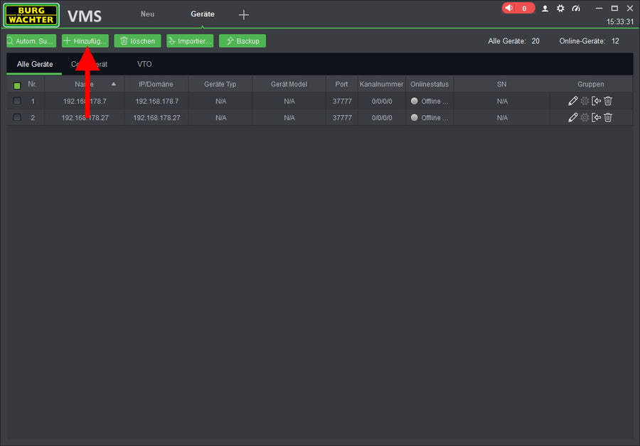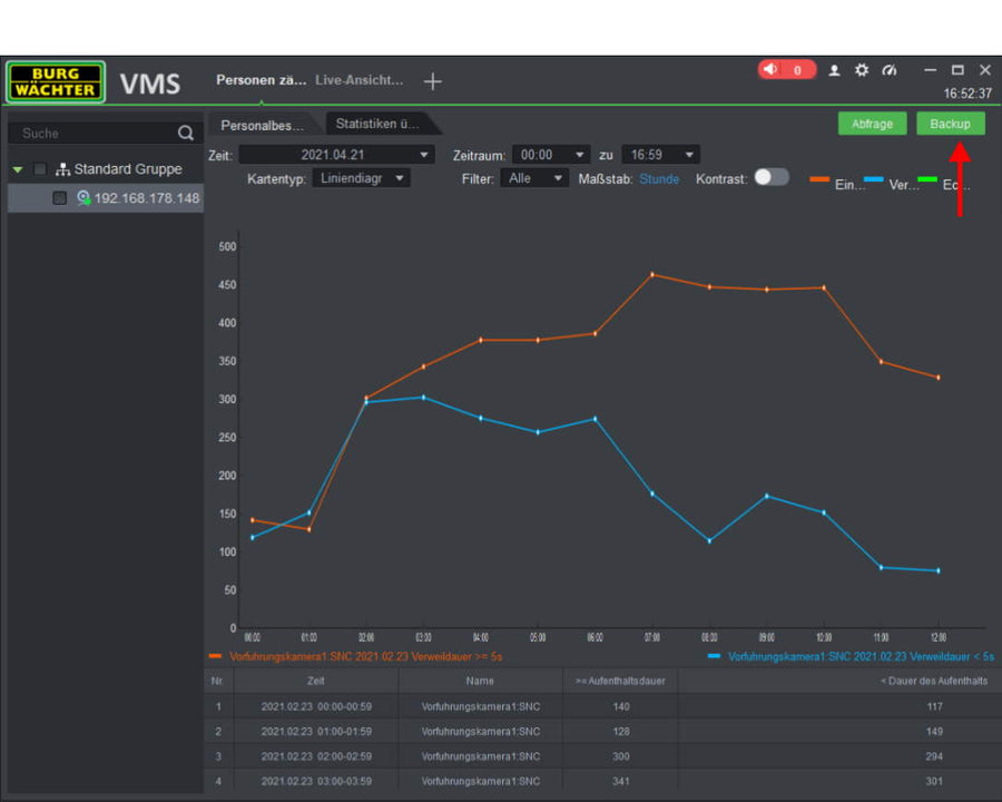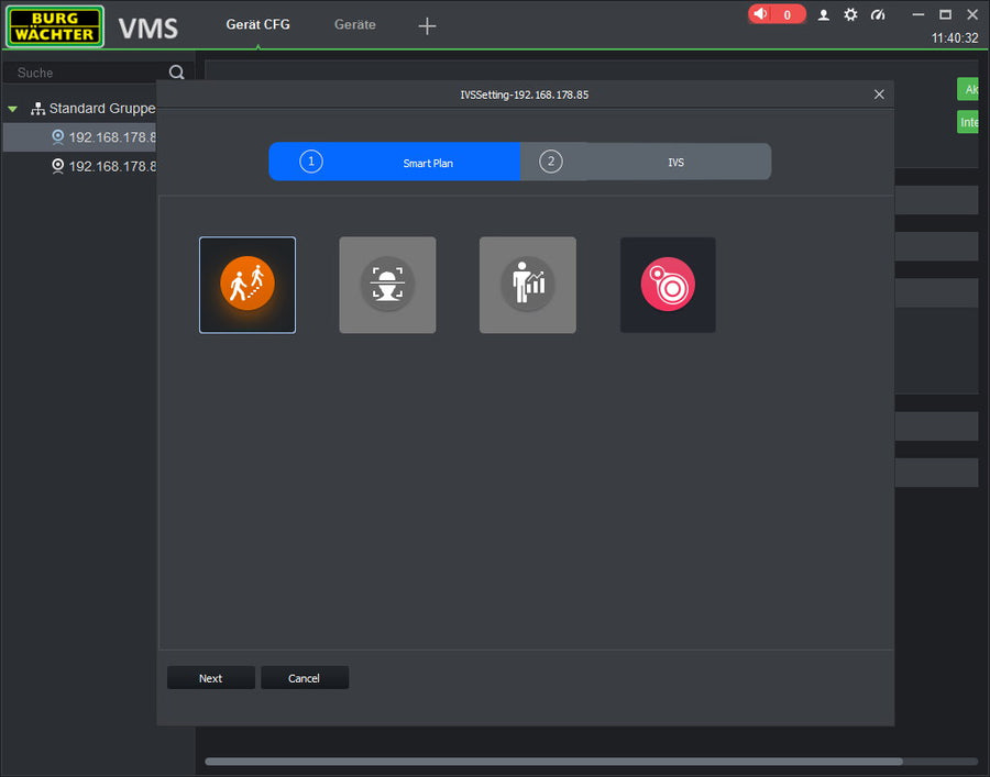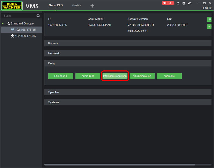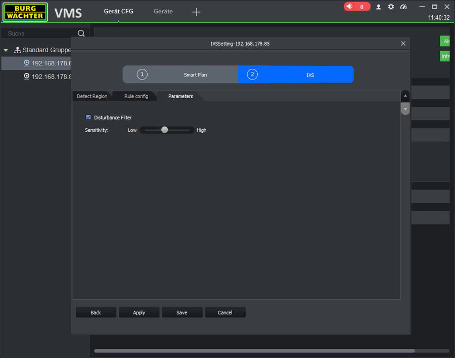 BURGvms IVA Kamera Konfiguration: Stolperdraht