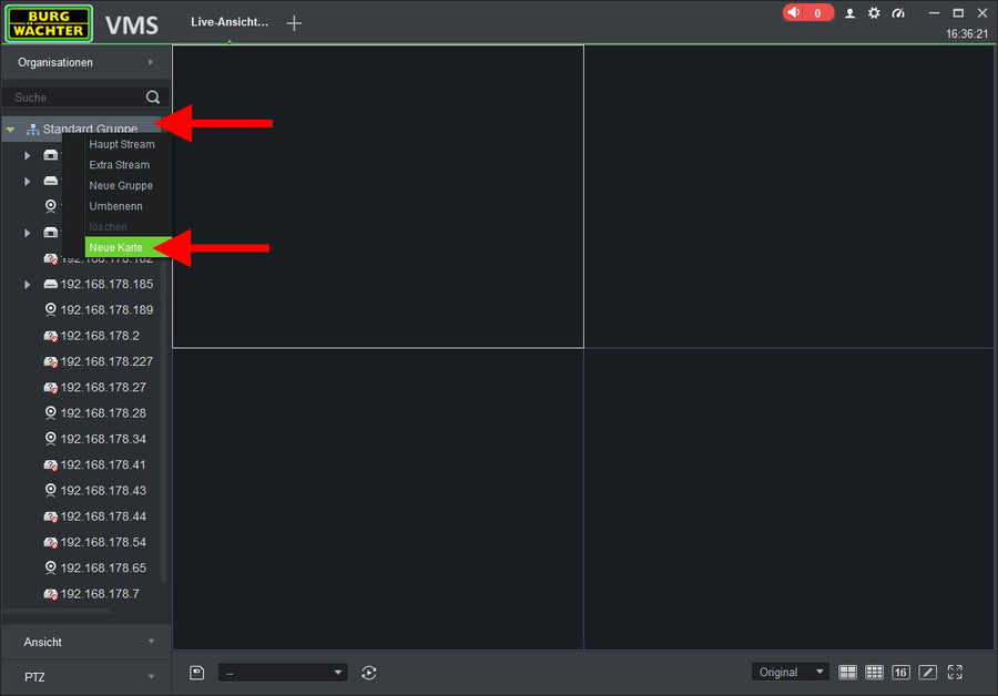 Rechtsklick auf die Gerätegruppe > Neue Karte