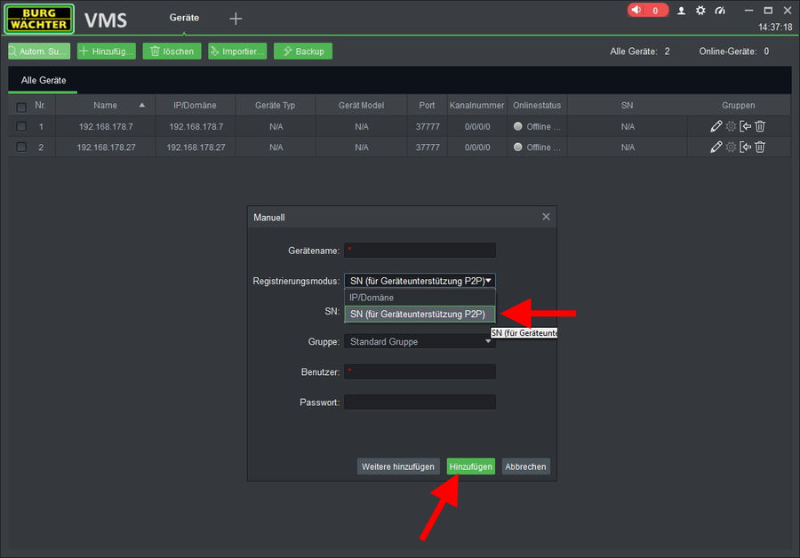 P2P / DDNS auswählen > ausfüllen > Hinzufügen