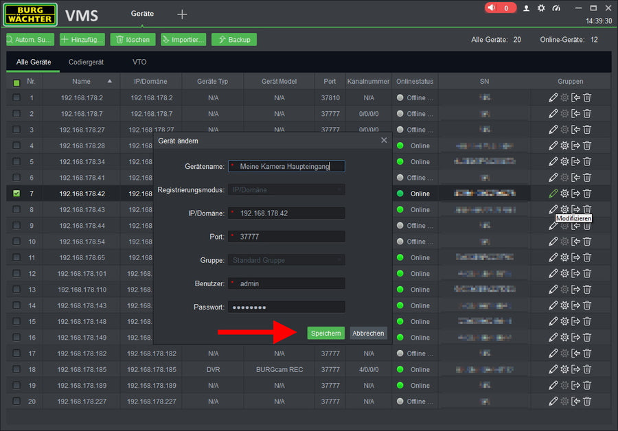 Stellen Sie die Empfindlichkeit entsprechend der Szene ein und klicken Sie auf Speichern